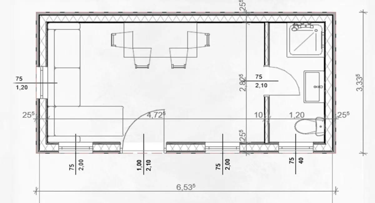 A 22 m²-es ház a 20 m²-es terasszal együtt tökéletes választás azoknak, akik szeretnének egy modern, könnyen fenntartható menedéket a természet közelében. A tágas terasz kiválóan alkalmas közös reggelikhez, grillezéshez vagy esti beszélgetésekhez, míg a belső tér minden alapvető kényelmet biztosít. Egyszerű, letisztult és kényelmes – egy igazi hétvégi otthon.